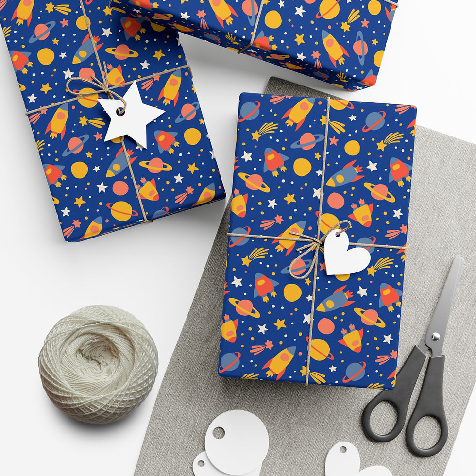 Futuristic Space Gift Wrapping Paper | Rockets, Planets, and Astronauts Pattern